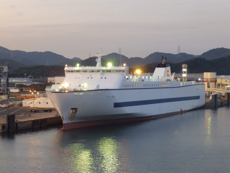 新門司港には、この泉大津港行きのフェリーのほか、先ほどの平安京みたいな感じの建物から出発する東神戸港行きのもの、